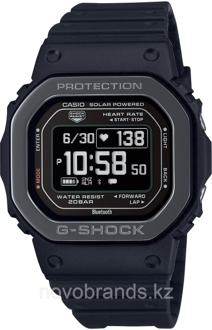 Новая цифровая модель серии G-Shock DW-H5600. Корпус и браслет сделаны из биопластика ( суперпрочного без вредных примесей ) и можно смело говорить о полноценном внедрении экологически чистого материала в линейку. Модель обладает большим набором полезных и удобных функций. Bluetooth позволяет удобно считывать данные на экране смартфона. Оптический датчик пульса.Комфортно приспособлены к занятию спортом, фитнесом, а так же любым видом активной жизни: Smartphone Time, мульти-функциональные таймеры, секундомеры, водозащита 20 бар и многое другое.